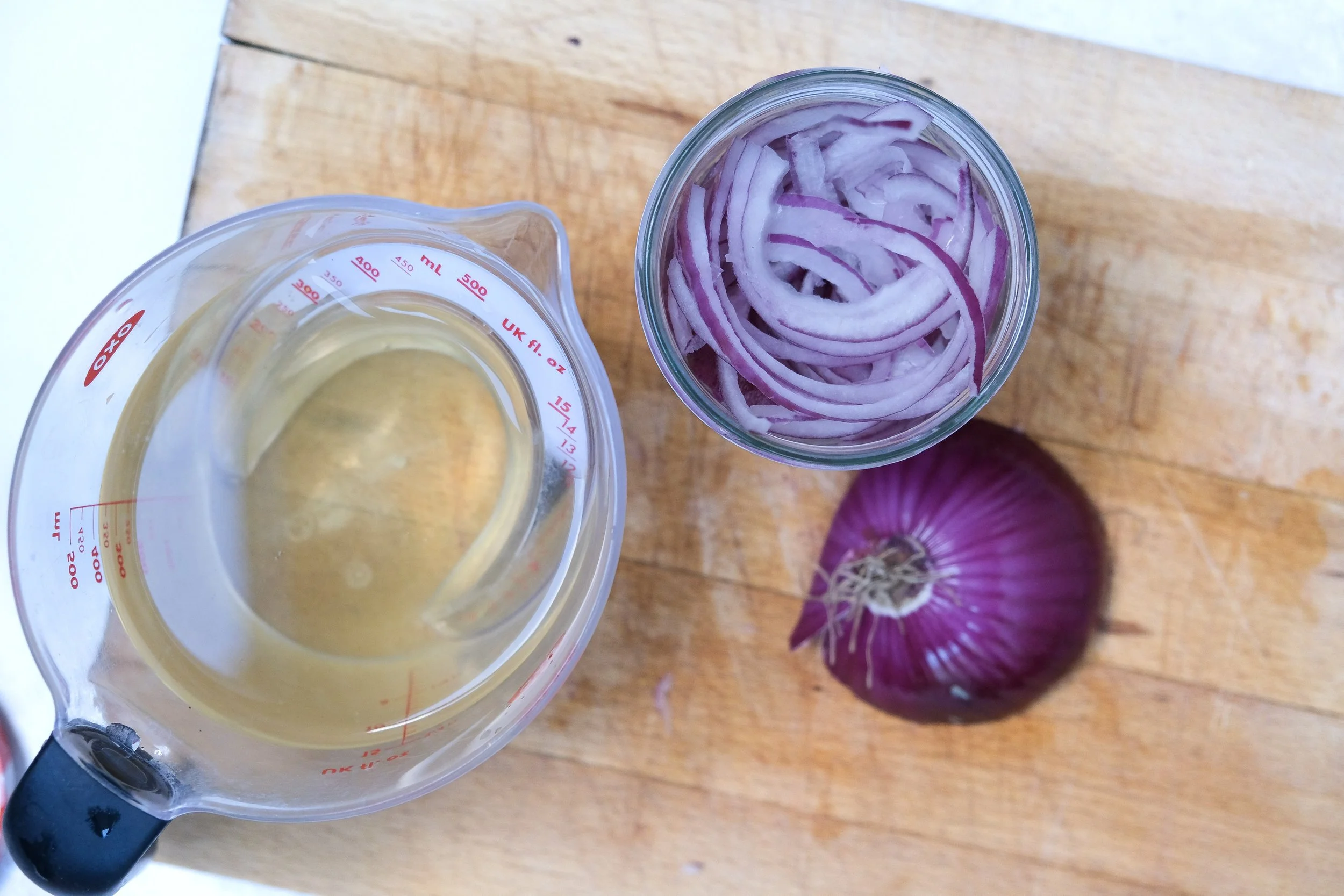 Pour the liquid mixture into the jar with the onions, until the onions are fully immersed
